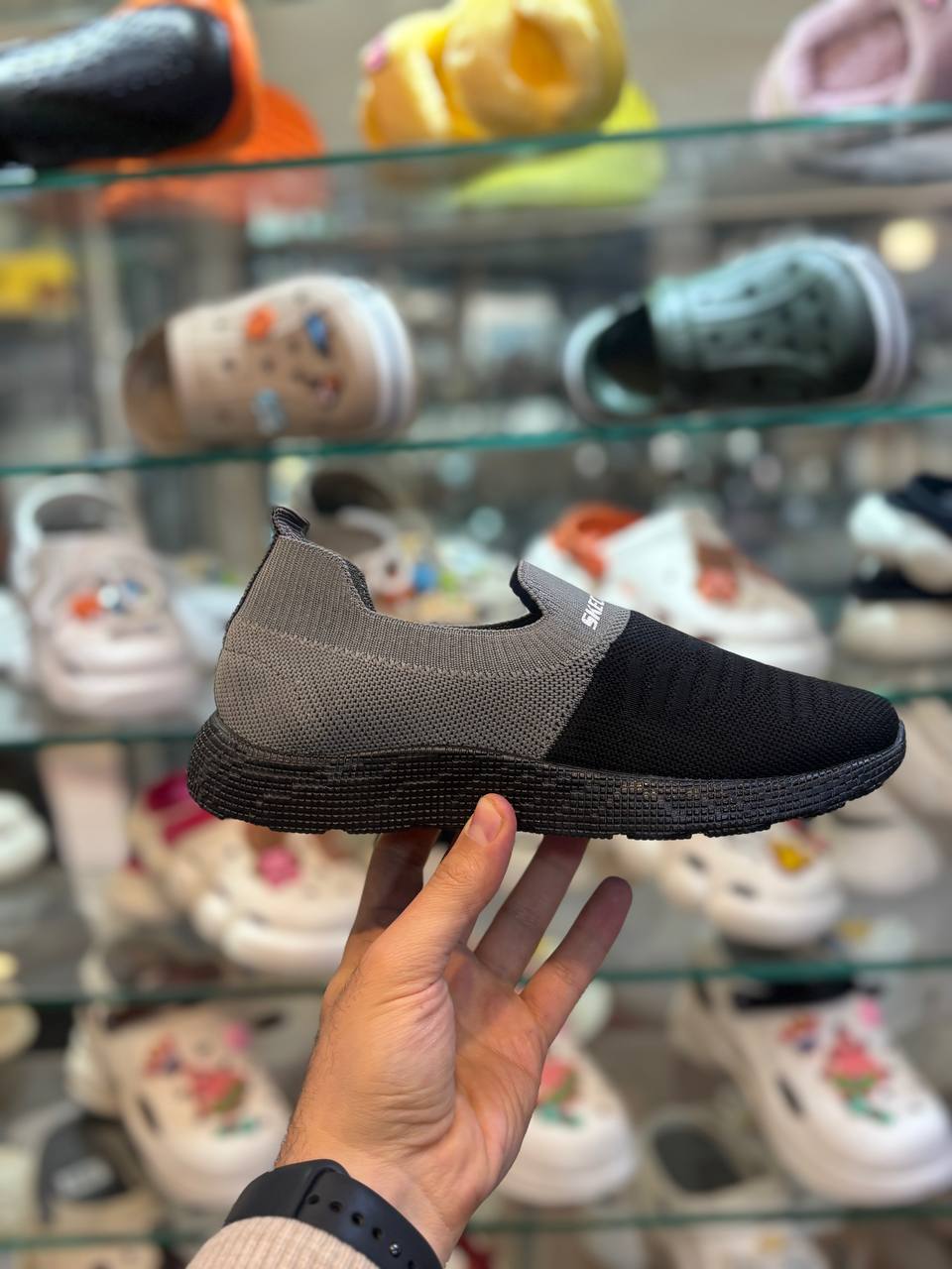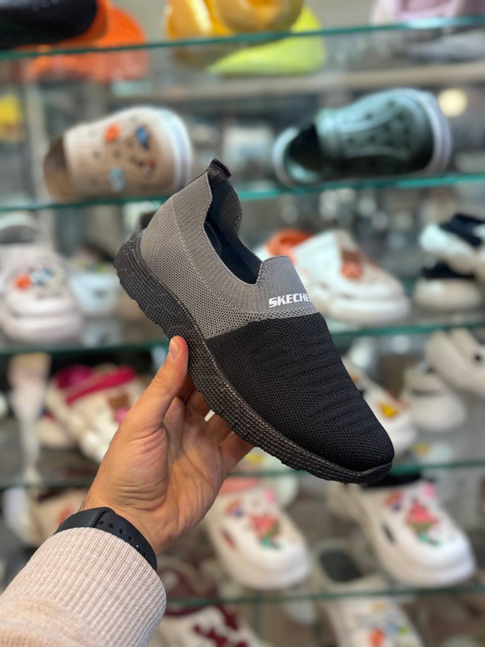 کتانی اسکیچرز رنگ مشکی طوسی زنانه و مردانه